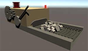 Description: La Machine doit avoir un bouton pour la partir, minimum. Elle doit être facile d'utilisation et les interractions doivent être évidentes. Elle doit contenir un minimum de 3 éléments animés, incluant lumières ou textures animées. L'animation doit durer au minimum 5 secondes. Il n'est pas nécéssaire d'ajouter du code ou des animations Unity, tout peut être fait avec seulement des animations 3dsmax, mais au moins un objet doit être cliquable pour déclencher l'animation(s). Le code est fournit pour cette étape. Finallement, vous devez fournir un fichier readme expliquant brièvement le fonctionnements des interactivités