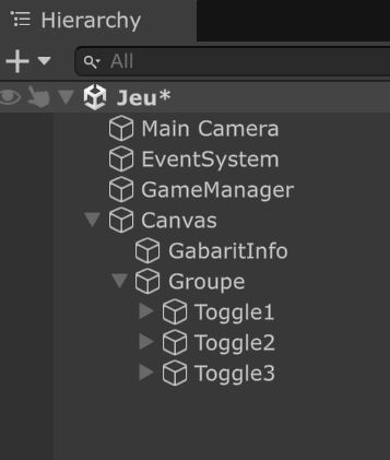 Il faudra bien entendu passer en paramètre à cette fonction la référence au ToggleGroup à "lire". Ce ToggleGroup peut être attribué à GameManager par sérialisation: